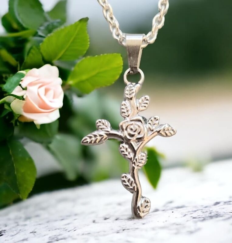Rebekka symboloi uskoa, rohkeutta ja kuuliaisuutta Jumalan tahdolle. Tämän kaulakorun ruusuristi muistuttaa noista samoista hengellisistä arvoista – lempeästä voimasta, päättäväisyydestä ja uskollisuudesta.