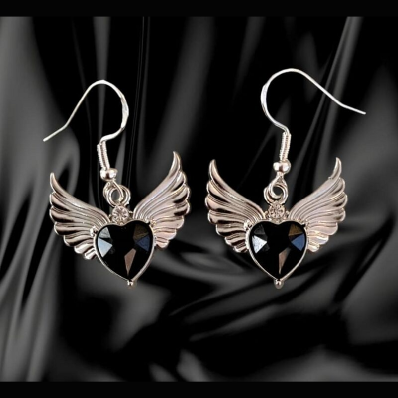 Surusydän korvakorut on luotu hetkiin, jolloin kaipaat lohtua ja hiljentymistä. Mustat sydänsiivet ja hopeakoukut muodostavat herkän korun, joka kantaa mukanaan muistoa, rakkautta ja toivoa vaikeiden aikojen keskellä.