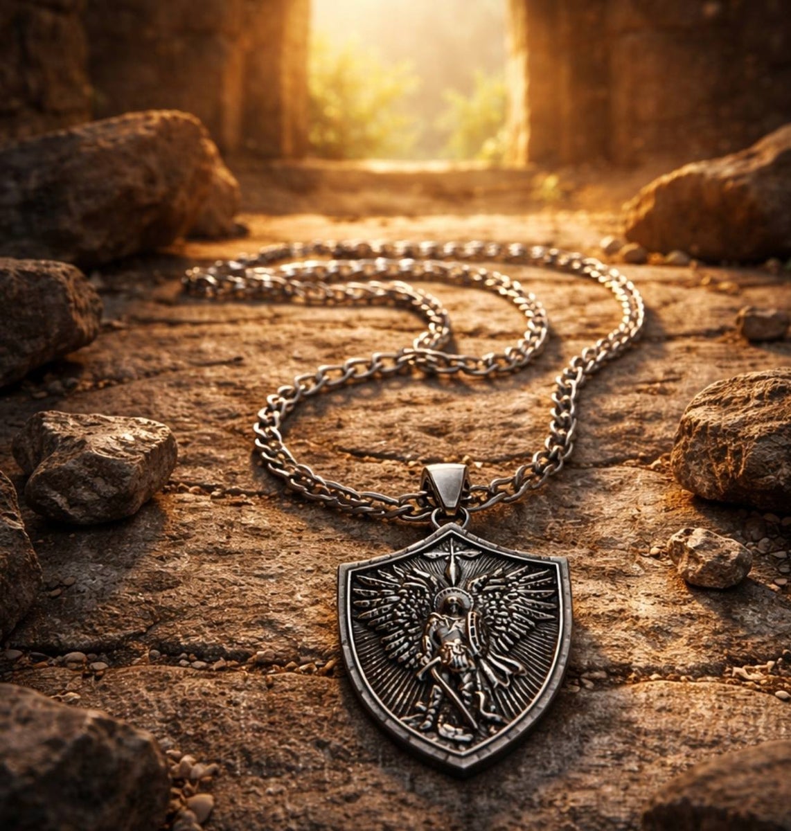 Arkkienkeli Mikael kaulakorut ovat vahvoja ja ajattomia koruja, joissa yhdistyvät selkeä muotoilu ja merkityksellinen symboliikka. Mikaelin kuva on kristillisessä perinteessä rohkeuden ja suojeluksen merkki, joka kulkee mukana arjessa muistuttamassa luottamuksesta ja toivosta.