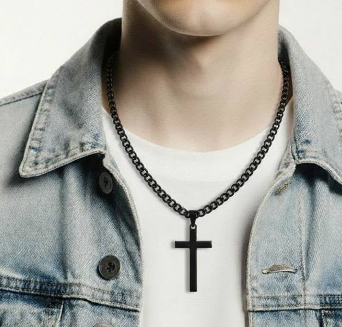Etsitkö modernia ja kestävää kaulakorua, jossa usko on selvästi läsnä? Tämä musta teräsristikaulakoru yhdistää vahvan symboliikan ja selkeälinjaisen muotoilun. Kiillotettu teräsristi on valittavissa kahdessa koossa – 3,5cm tai 4cm – ja 6mm leveä musta panssariketju saatavilla kahdessa pituudessa, 50cm tai 60cm.