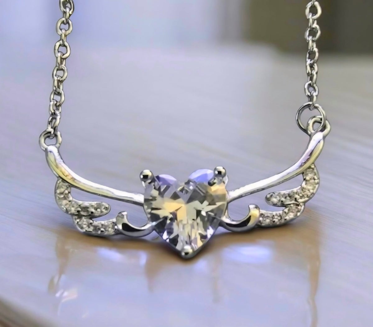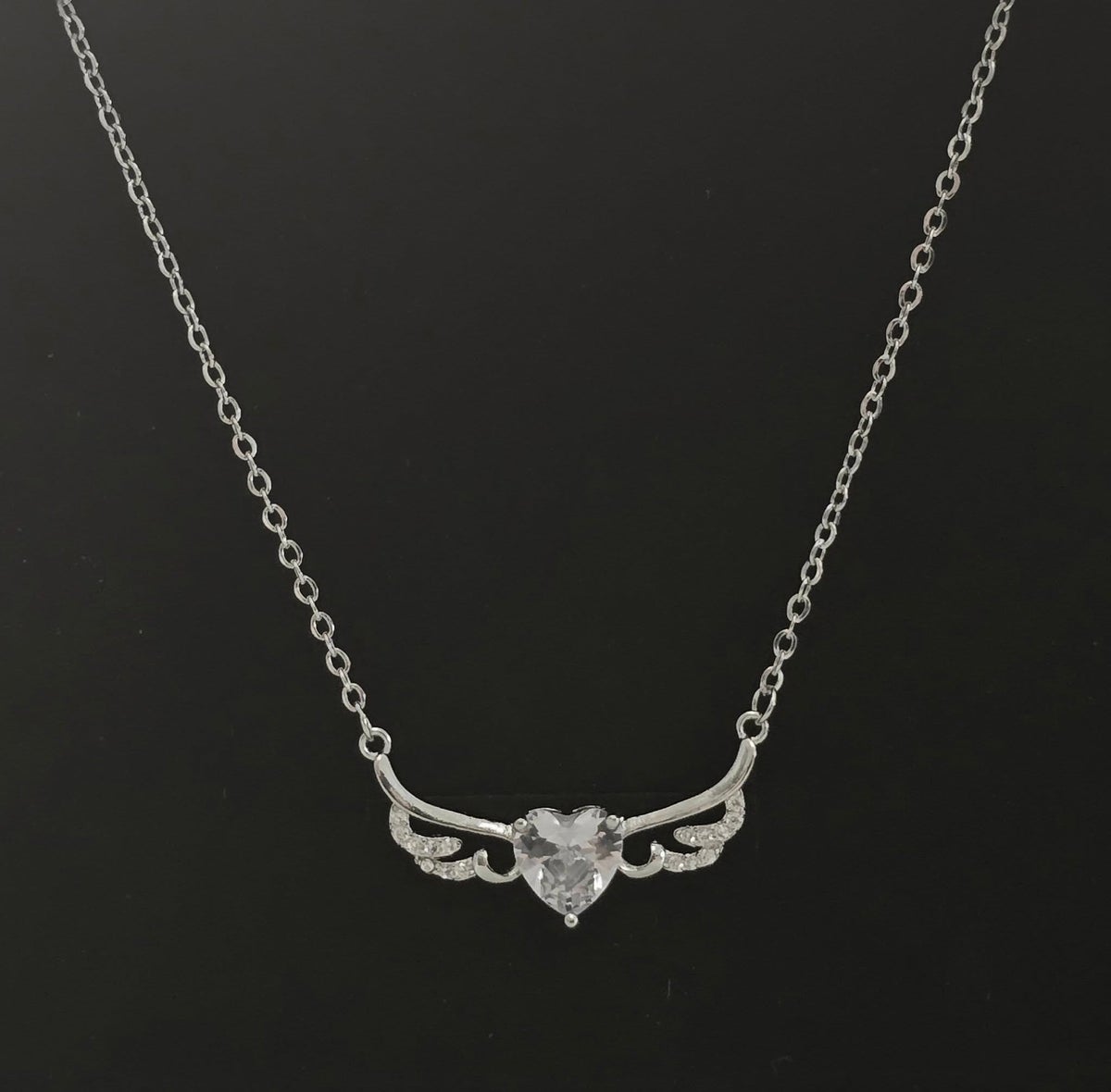 - Materiaali: Sterling 925 -hopea enkelinsiivet ja ketju, kirkas zirkonia sydän