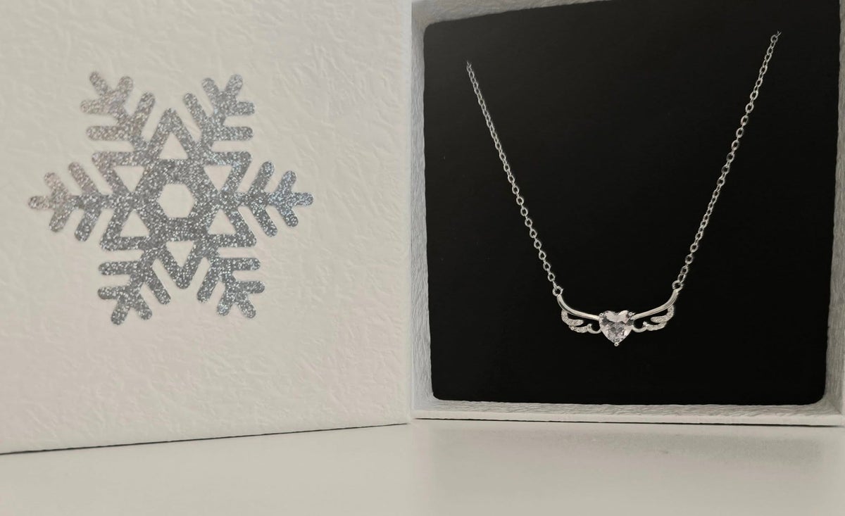 Herkkä ja kaunis kaulakoru, jossa hopeiset enkelinsiivet kaartuvat kirkkaan zirkoniasydämen ympärille. Koru on lahja, joka muistuttaa rakkaudesta ja siitä, ettei kukaan kulje yksin.