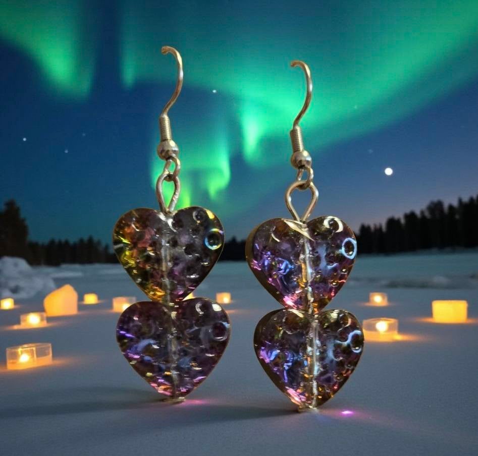 Revontulisydän korvakorut – sydämen säteilyä kuin pohjoisen taivas