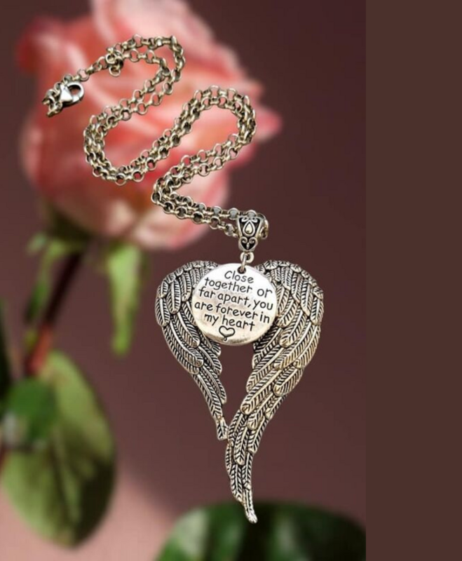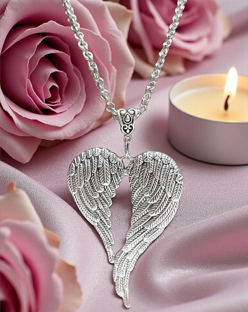 – Merkityksellinen sydänsiivet kaulakoru rakkauden ja kaipauksen viestillä