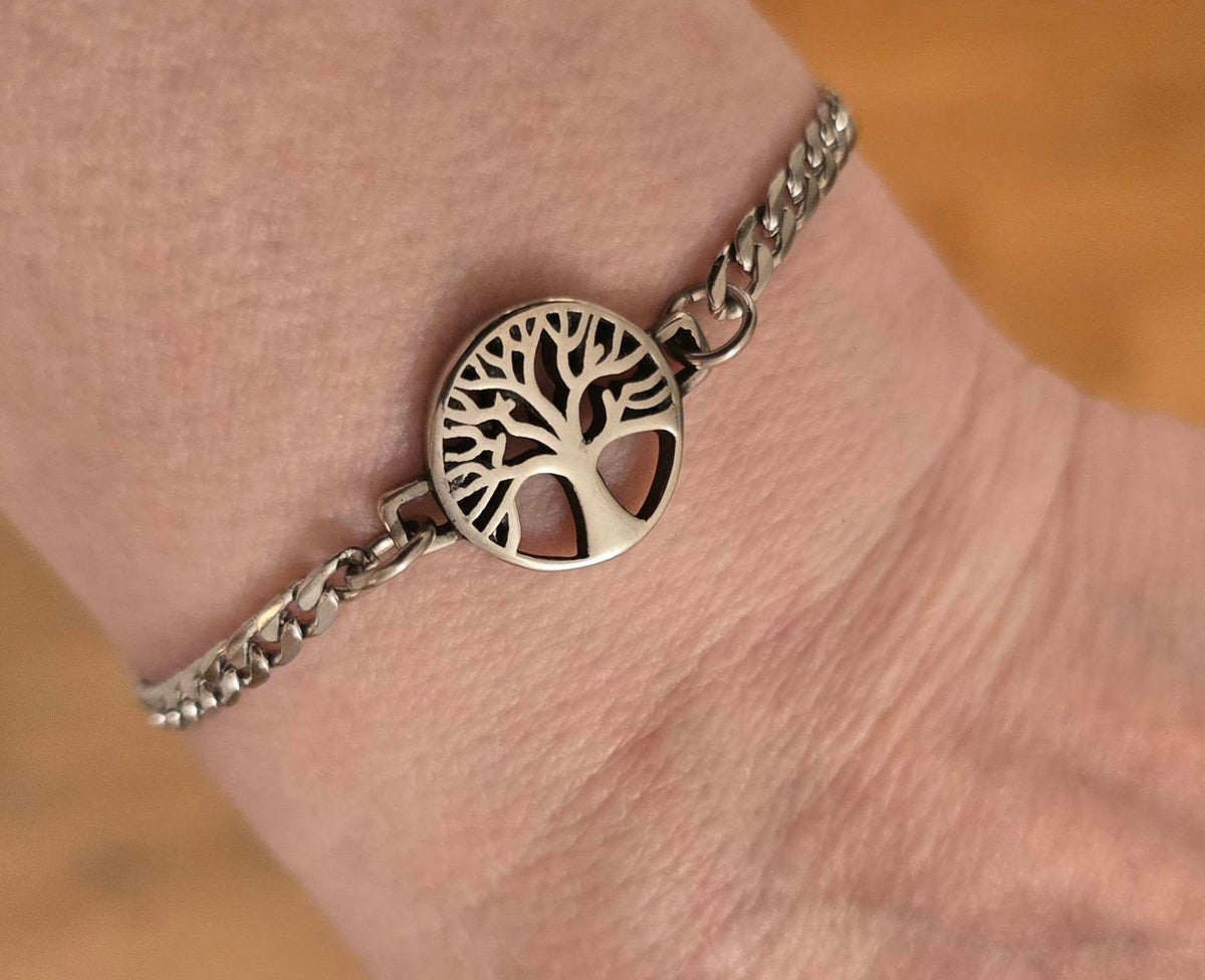 Elämänpuu rannekoru teräsketjussa