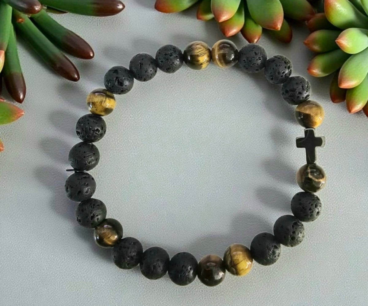 Tämä kiviristi-rannekoru on enemmän kuin kaunis koru – se on rukouksen, suojan ja hengellisen vakauden merkki. Korun keskipisteenä on siro, kiinteä kiviristi, joka sulautuu saumattomasti käsin pujotettuun kivihelmiketjuun. Voit valita helmien ja ristin värin sekä koon, ja tehdä siitä juuri sinulle tai läheisellesi sopivan – merkityksellisen ja ainutlaatuisen lahjan.