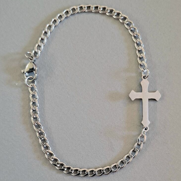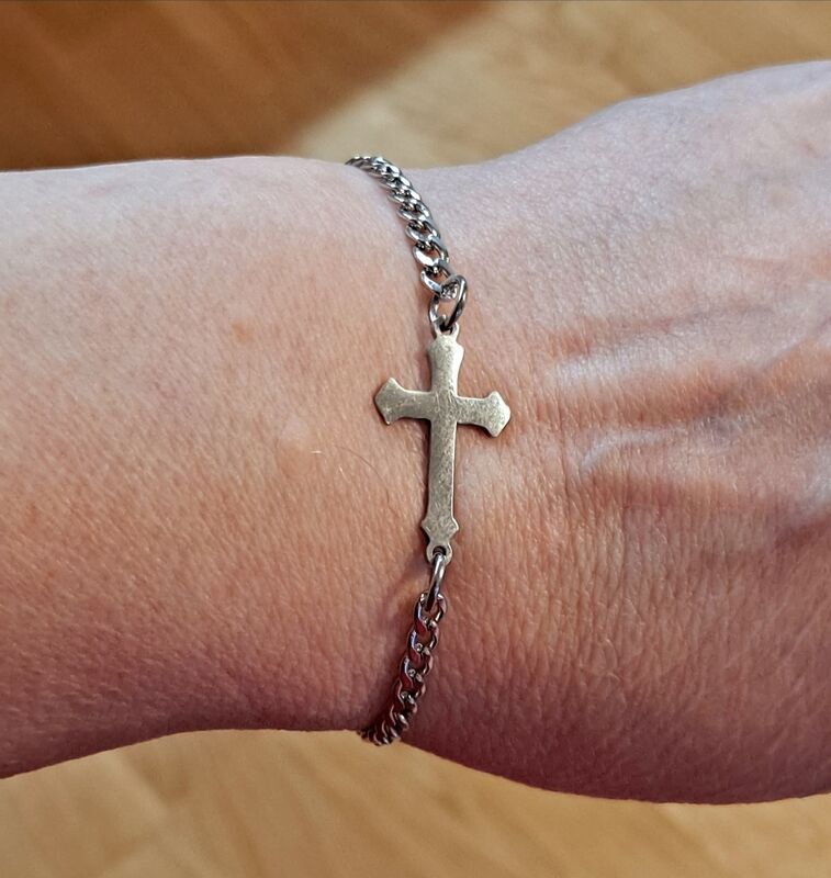 Teräsristi rannekoru – usko mukana ranteessasi