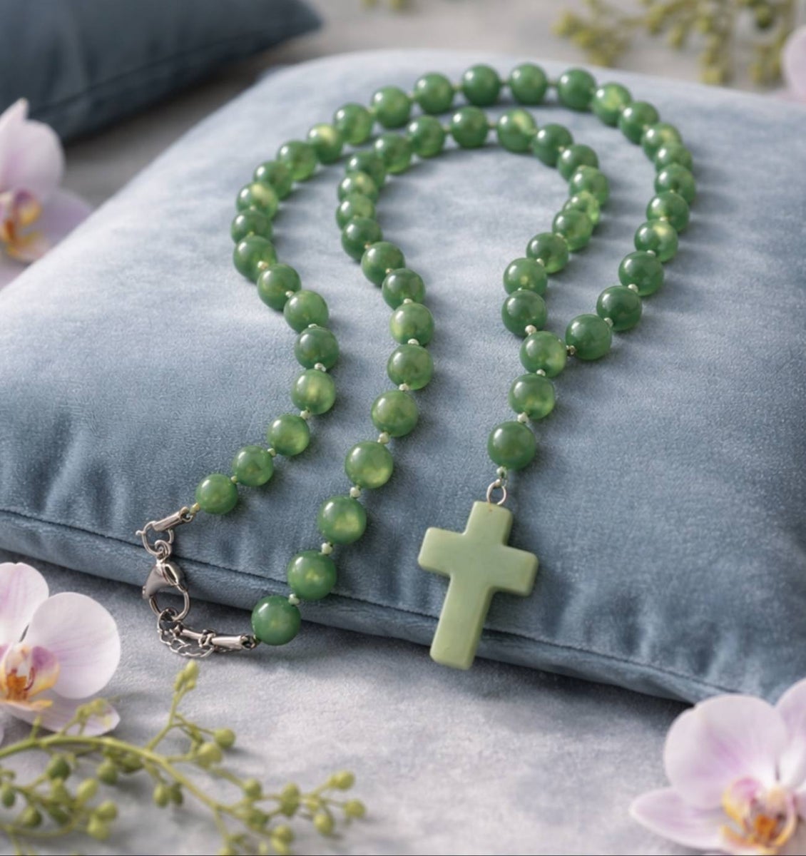 Pitkät helmikaulakorut voivat olla paljon enemmän kuin kaunis koru. Ne voivat olla hiljentymisen apu, rukouksen muistuttaja ja näkyvä merkki uskosta arjen keskellä. Tämä 80cm pitkä helmikaulakoru on suunniteltu sinulle, joka haluat kantaa merkitystä mukana jokaisessa päivässä. Jokainen koru valmistetaan käsityönä Korupaja Marian sydämessä asiakkaan toiveiden ja värivalintojen mukaan yksilöllisesti ja tarkoituksella.